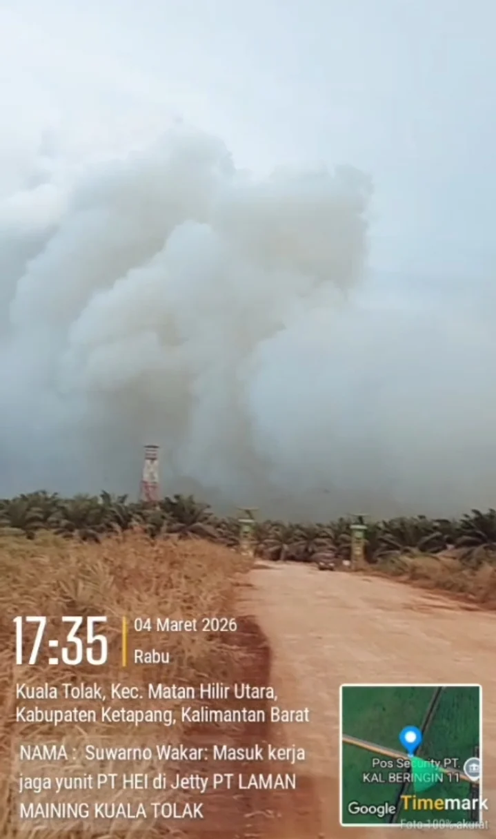 Ketapang, Kalbar – Kepulan asap tebal terlihat membumbung tinggi di wilayah Desa Kuala Tolak, Kecamatan Matan Hilir Utara, Kabupaten Ketapang, Kalimantan Barat, Rabu (4/3/2026) sekitar pukul 17.35 WIB.