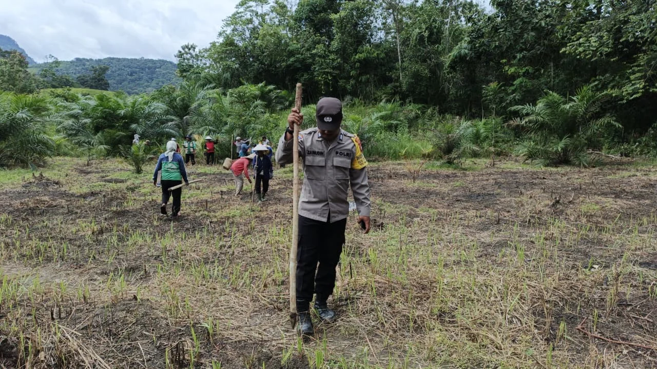 Dalam kegiatan tersebut, Brigpol Zainudin tidak hanya hadir mendampingi, tetapi ikut terlibat langsung bersama kelompok tani. Pendampingan dilakukan agar proses tanam berjalan sesuai rencana dan dapat berlanjut pada musim berikutnya.