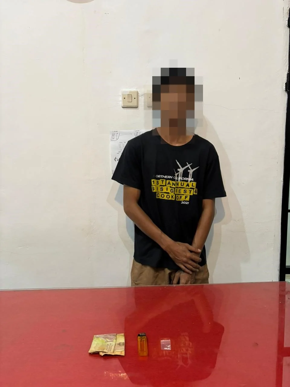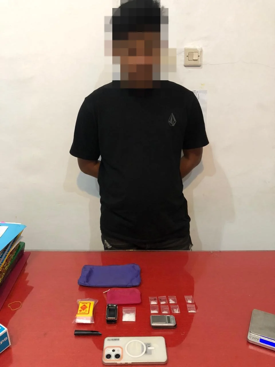 “ Dari informasi yang disampaikan warga, kami langsung melakukan penyelidikan dilapangan dan benar saja, saat pelaku MF ini kita amankan, turut juga kita temukan dari tangan pelaku sejumlah barang bukti berupa 9 kantong klip transparan kecil berisi serbuk kristal diduga narkotika jenis sabu dengan berat total 4,23 gram brutto, 2 buah timbangan digital, 1 buah pipet modifikasi sendok sabu, 2 buah dompet serta 1 buah handphone ” Ujar IPTU Dewa Made Surita.