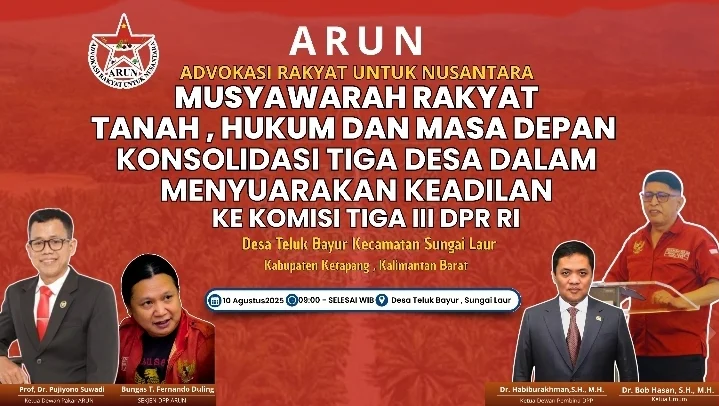 Ketapang – Dalam waktu dekat, akan digelar Musyawarah Rakyat (Musra) yang membahas konflik agraria di wilayah Desa Teluk Bayur, Kecamatan Sungai Laur, Kabupaten Ketapang. Kegiatan ini dijadwalkan berlangsung pada Minggu, 10 Agustus 2025 di Balai Pertemuan Umum Desa Teluk Bayur, mulai pukul 08.00 WIB hingga selesai.