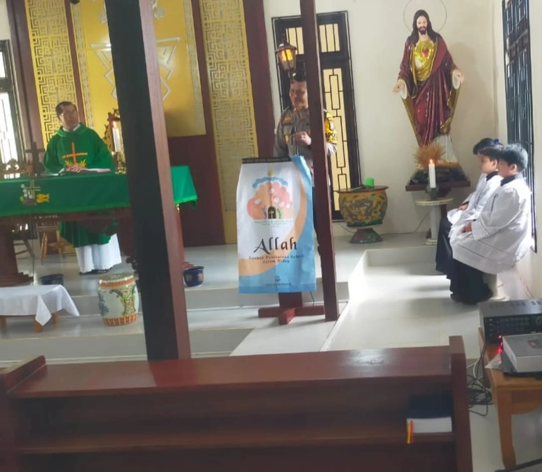 MBN ||KETAPANG – Dalam upaya mempererat hubungan silaturahmi dan menciptakan kedekatan dengan masyarakat, Kapolsek Matan Hilir Selatan IPTU Jumadi Hutabarat S.H. , bersama anggota menggelar kegiatan “Minggu Kasih” di Gereja Katolik Santo Stefanus Stasi Pesaguan, pada Minggu (19/10/2025).