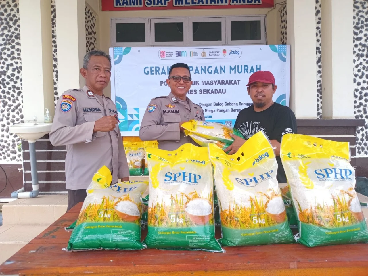 Gerakan Pangan Murah ini terselenggara atas sinergi Polres Sekadau dengan Bulog Cabang Sanggau. Sebanyak 65 karung beras SPHP kemasan 5 kilogram dijual seharga Rp60 ribu per karung atau Rp12 ribu per kilogram, dan seluruhnya habis dibeli warga.