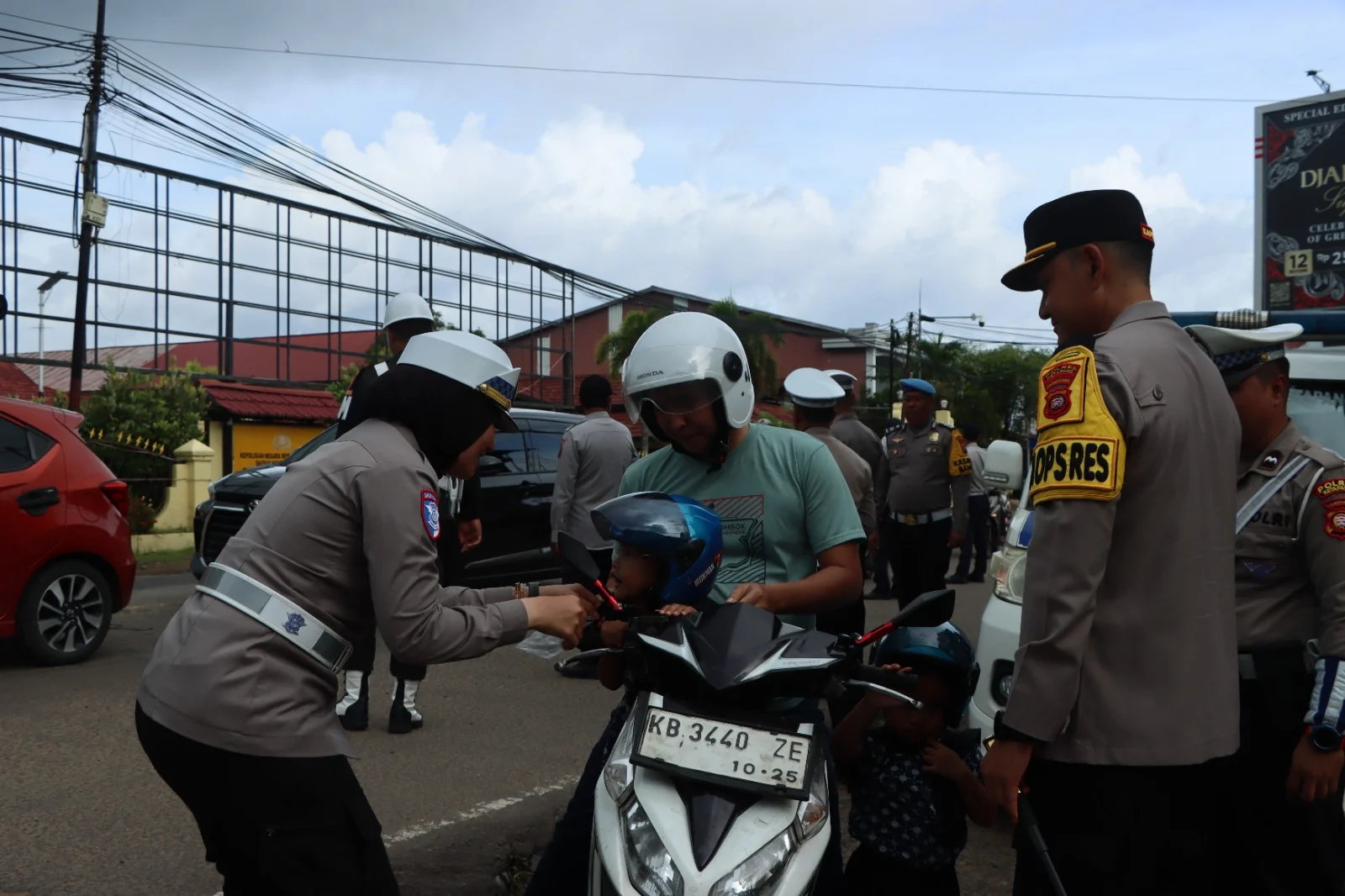 Selain membagikan helm, petugas juga memberikan brosur imbauan keselamatan serta mengingatkan para pengendara agar selalu mematuhi aturan berlalu lintas selama Ops Zebra Kapuas 2025 berlangsung.
