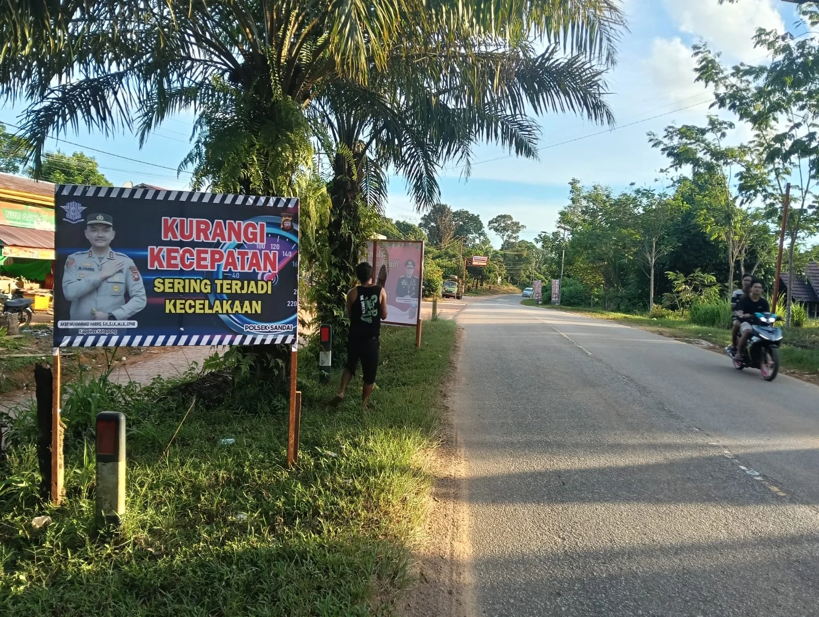 Jelang Nataru 2025–2026, Polsek Sandai Pasang Banner Himbauan Tertib Lalu Lintas di Jalan Trans Kalimantan
