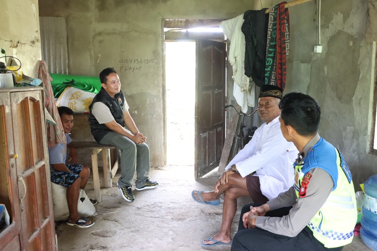 Kunjungan itu dihadiri Ps. Kanit Kamsel Satlantas Aipda Yuni, didampingi Ps. Kasubsipenmas Sihumas Bripka Aji, anggota Sihumas Briptu Fikri, serta warga setempat. Dalam kesempatan itu, bantuan berupa satu kasur, satu karung beras SPHP, dan uang tunai diserahkan langsung kepada Mbah Kadir.