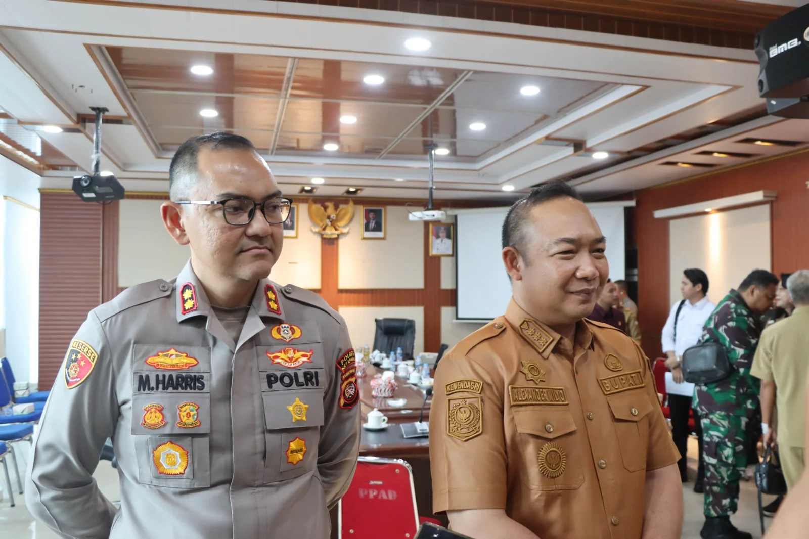 MBN || KETAPANG, Polda Kalbar – Kapolres Ketapang AKBP Muhammad Harris, S.H., S.I.K., M.I.K., CPHR bersama para Pejabat Utama (PJU) menghadiri kegiatan rapat koordinasi dalam rangka pembahasan kejadian pembakaran dan penembakan di Kecamatan Air Upas, Kabupaten Ketapang, Selasa (07/04/2026). Kegiatan tersebut dilaksanakan di Ruang Rapat Kantor Bupati Ketapang.