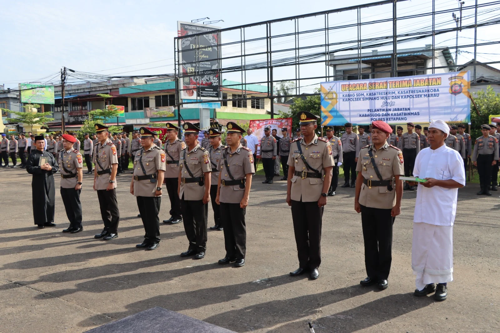 Upacara sertijab ini dihadiri oleh para Pejabat Utama Polres Ketapang, Kapolsek jajaran, personel Polres Ketapang, serta Asn Polres Ketapang. Kegiatan diawali dengan pembacaan keputusan Kapolda Kalimantan Barat tentang mutasi jabatan, dilanjutkan dengan pengambilan sumpah jabatan, penandatanganan berita acara sertijab, dan pakta integritas oleh pejabat yang lama dan pejabat baru.
