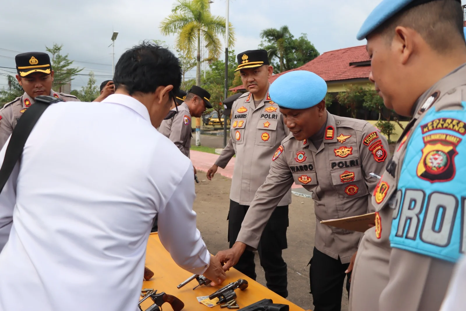 Pemeriksaan dilaksanakan di halaman Mapolres Ketapang dengan melibatkan seluruh personel yang memegang senjata api dinas. Dalam kegiatan tersebut, dilakukan pengecekan secara menyeluruh terhadap kondisi senjata api, jumlah amunisi, serta kelengkapan administrasi berupa surat izin pemegang senjata api yang wajib dimiliki oleh setiap personel.