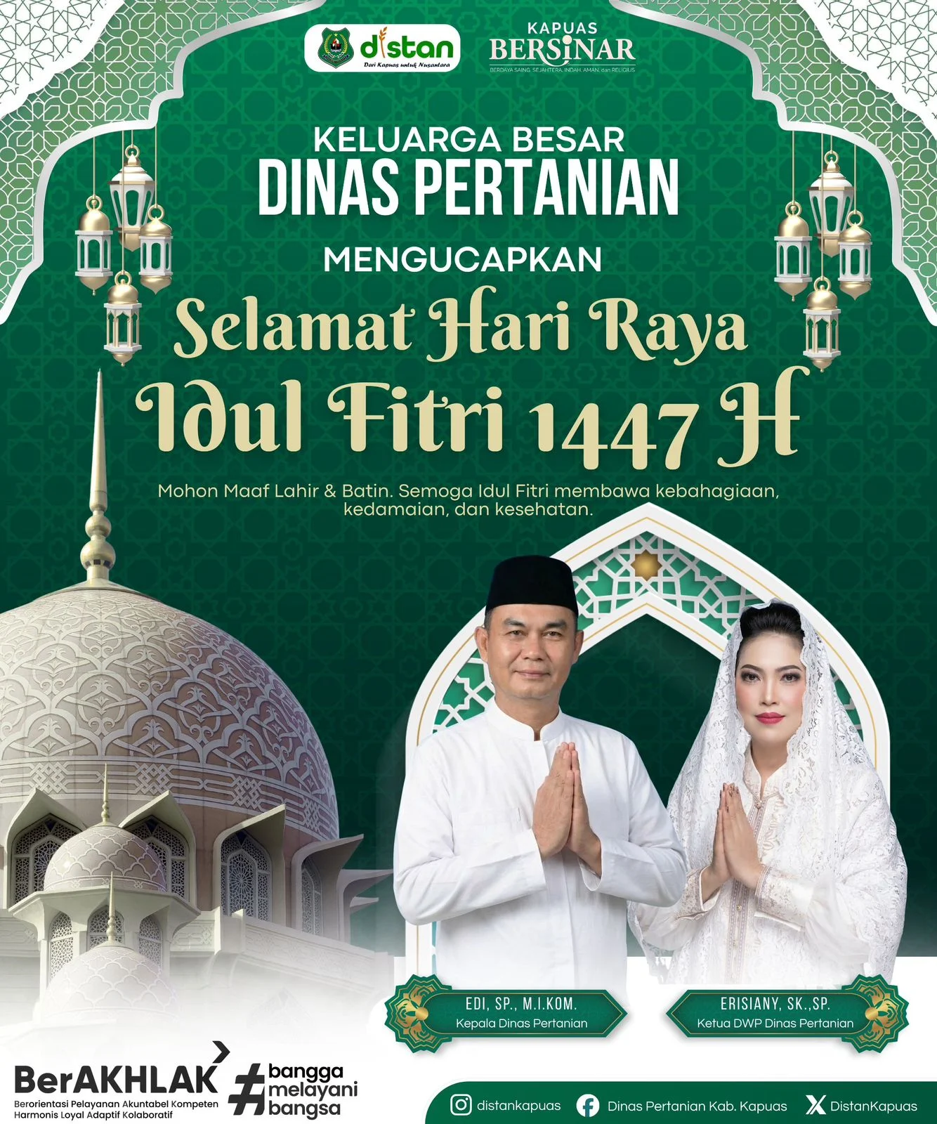 Keluarga Besar Dinas Pertanian Kabupaten Kapuas Provinsi Kalimantan Tengah Mengucapkan Selamat Hari Raya Idul Fitri 1447 H 16 Maret 2026oleh Redaksi-102 Dilihatoleh Redaksi Post Views: 102 Jangan LewatkanKemenko Polkam Kunjungi Desa Temajuk, Kecamatan Paloh Kabupaten SambasKapolsek Jelai Hulu Pimpin Penanaman Jagung HibridaBIDKUM POLDA Kalbar Gelar Penyuluhan di Polres KetapangPolsek Nanga Tayap dan Polsek Tumbang Titi Gelar Sosialisasi KarhutlaBupati Sambas Hadiri Rapat Koordinasi Turnamen Voli AVC Men’s League 2026