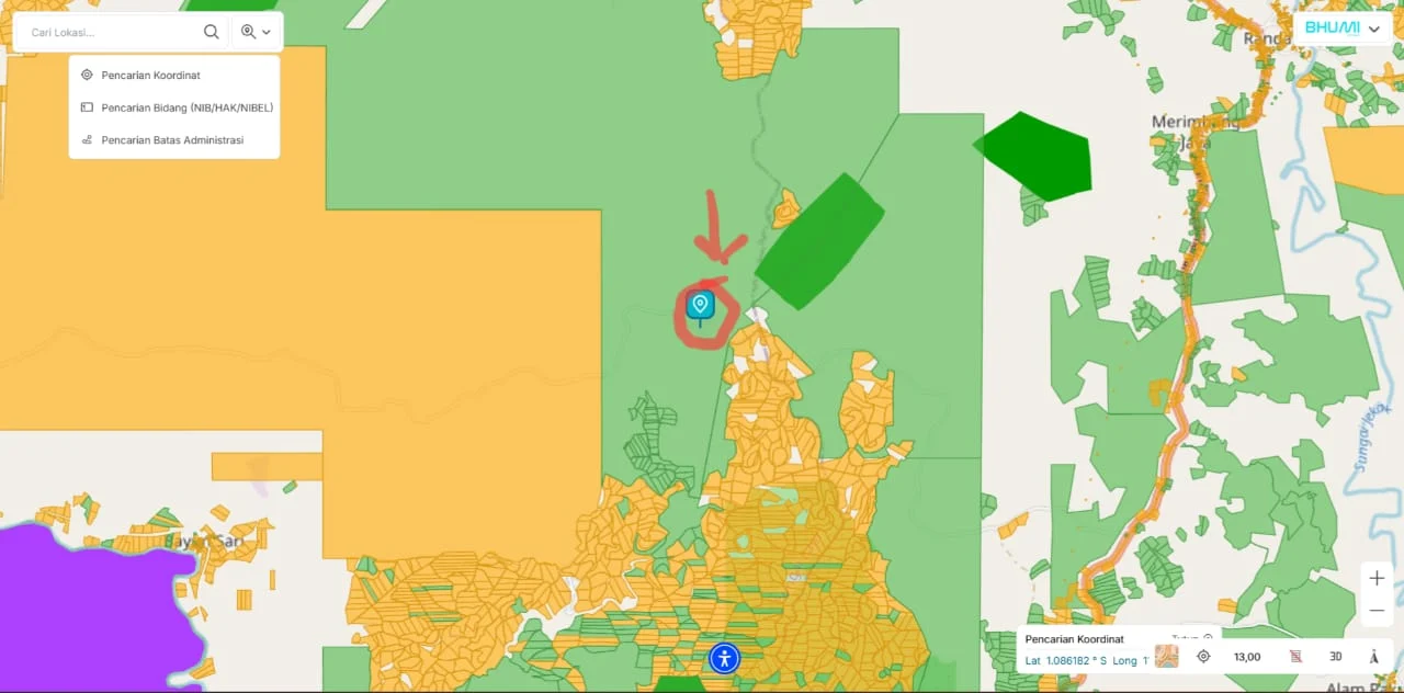 Berdasarkan peta resmi ATR/BPN, lahan tempat M. Sood memanen kelapa sawit berada di luar Hak Guna Usaha (HGU) perusahaan. Status alas hak lahan tersebut dinyatakan kosong dari HGU, namun fakta administratif ini justru diabaikan aparat.