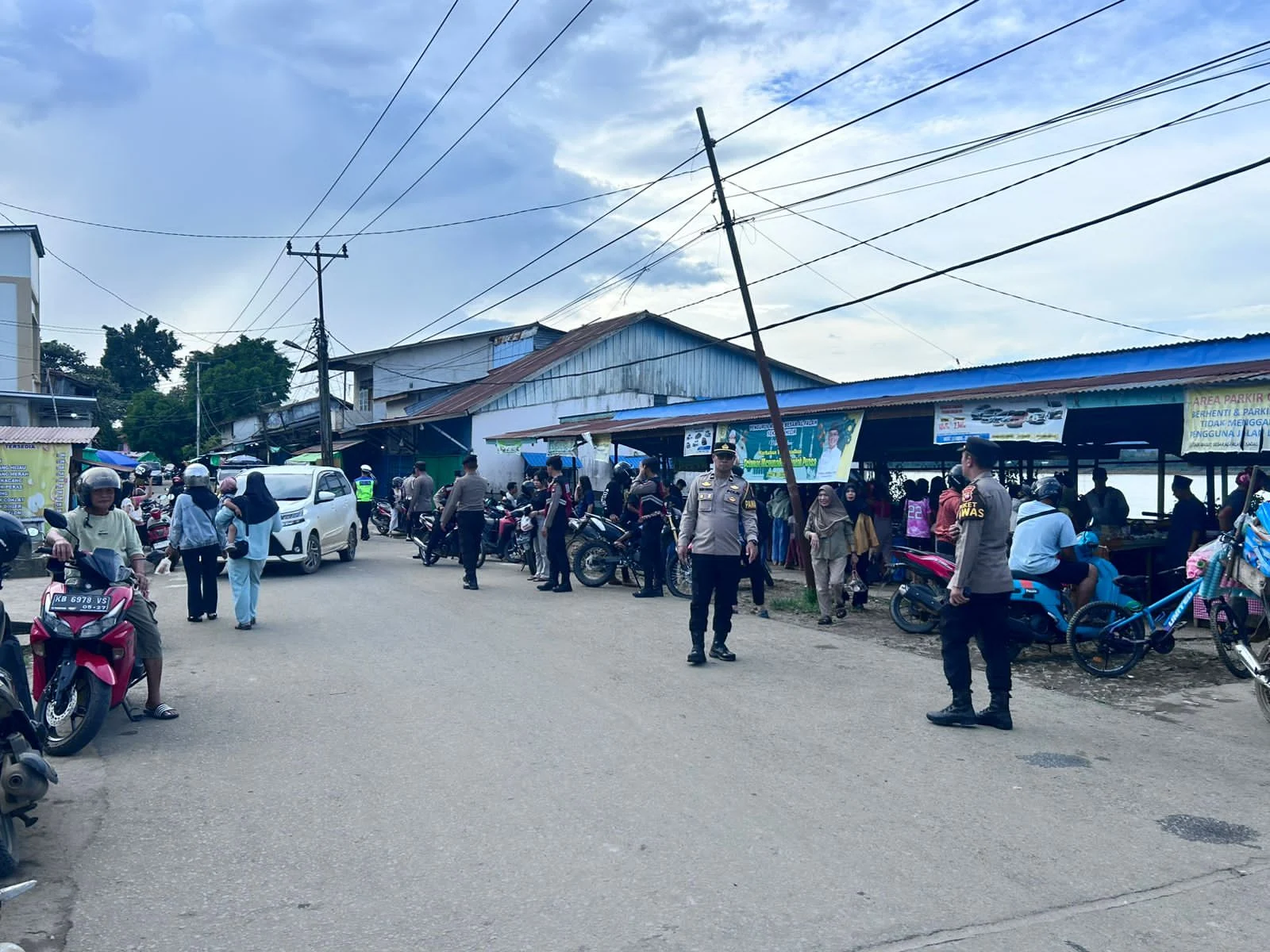 Selain pengamanan terbuka, personel melakukan pengaturan lalu lintas di sekitar area pasar untuk mencegah kemacetan akibat parkir sembarangan dan penumpukan kendaraan menjelang azan Magrib.