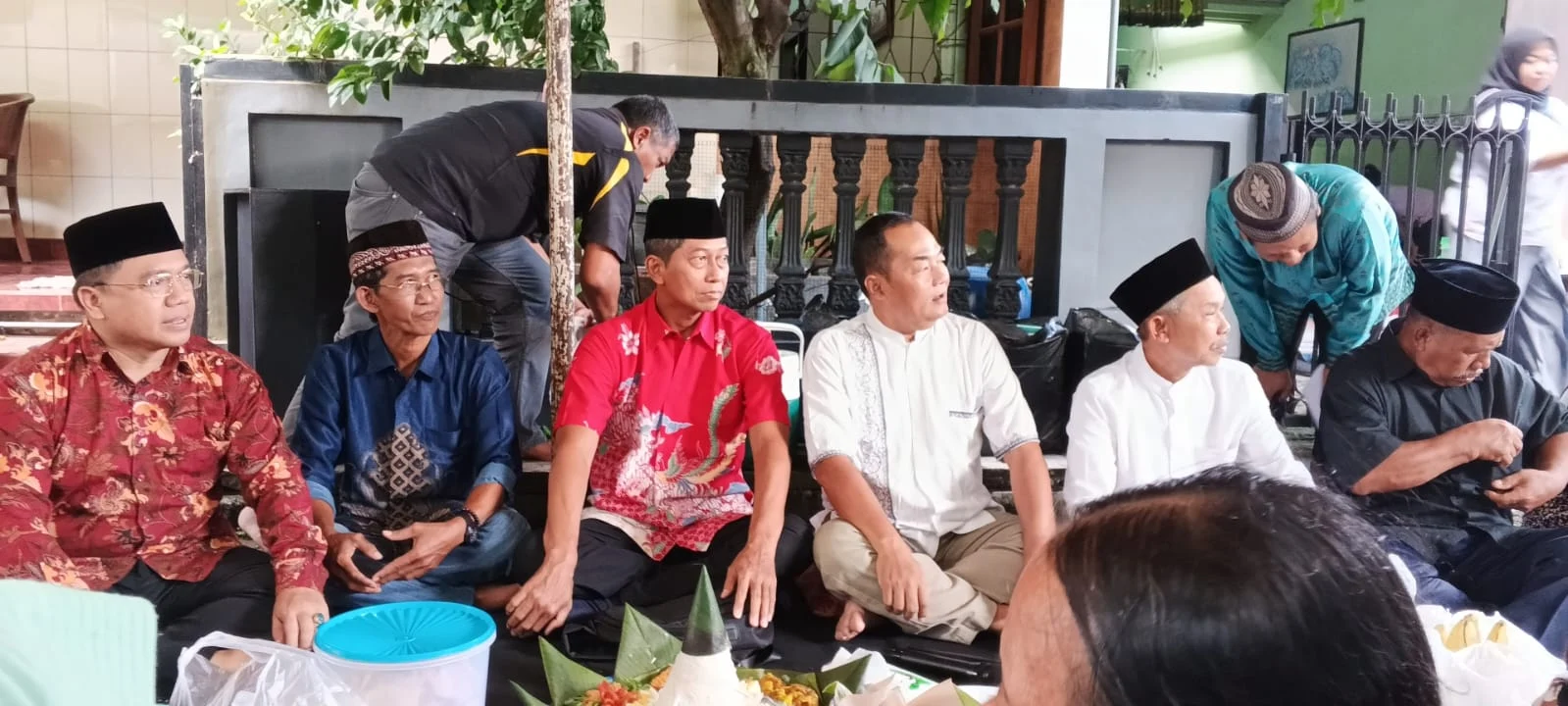 Ratusan warga datang dengan membawa aneka bawaan yang nantinya setelah do’a bersama dipanjatkan dilanjutkan dengan makan bersama.