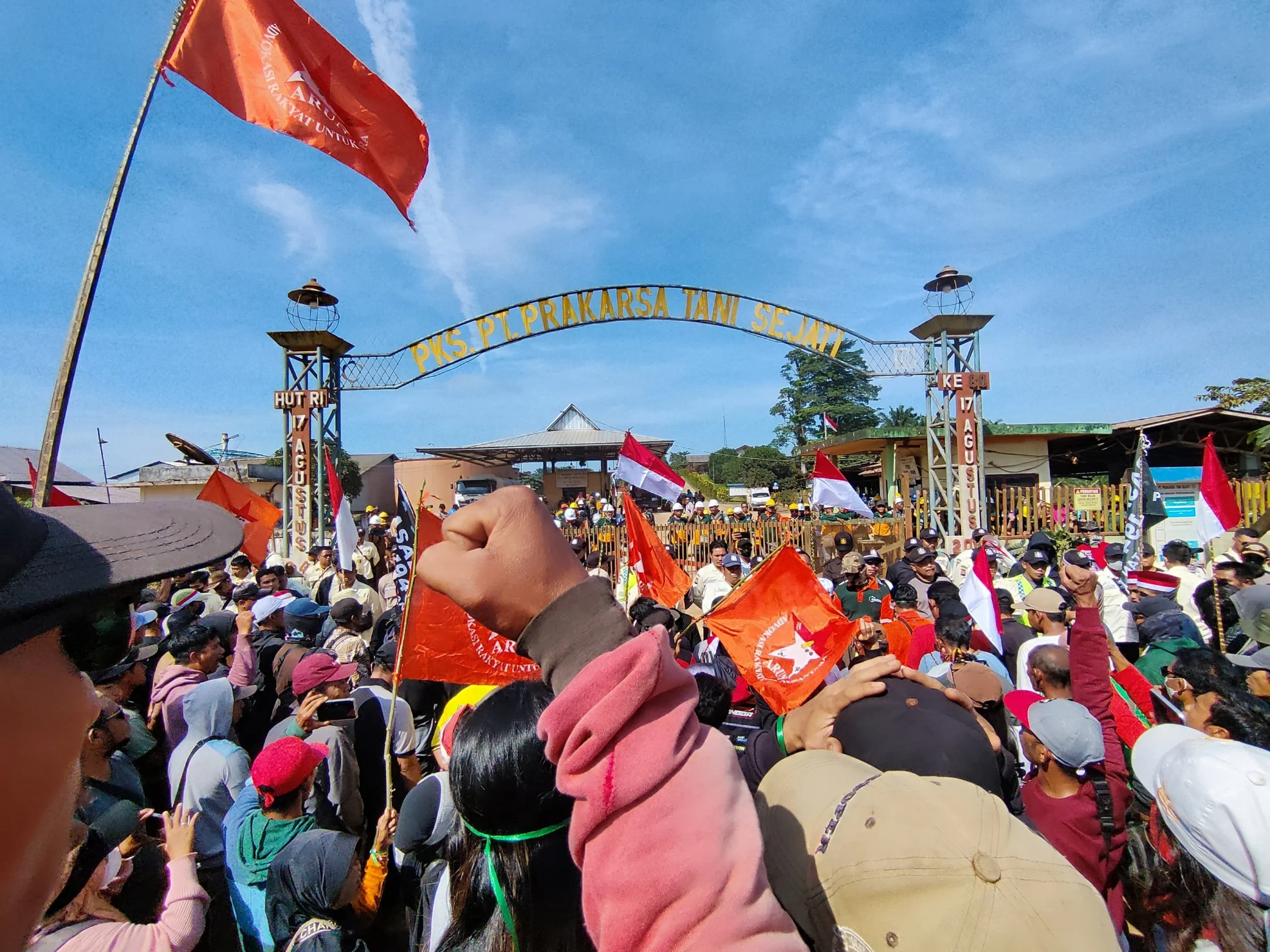 Ketapang, 23 September 2025 — Ratusan warga dari tiga desa, yaitu Desa Pelanjau Jaya, Desa Suka Karya, dan Desa Teluk Bayur kembali melakukan aksi pendudukan pabrik di depan pabrik PT. Minamas Group dan PT. Prakarsa Tani Sejati (PTS). Aksi ini dilakukan sebagai bentuk lanjutan perjuangan masyarakat setelah sebelumnya tidak mendapat tanggapan dari pihak perusahaan.