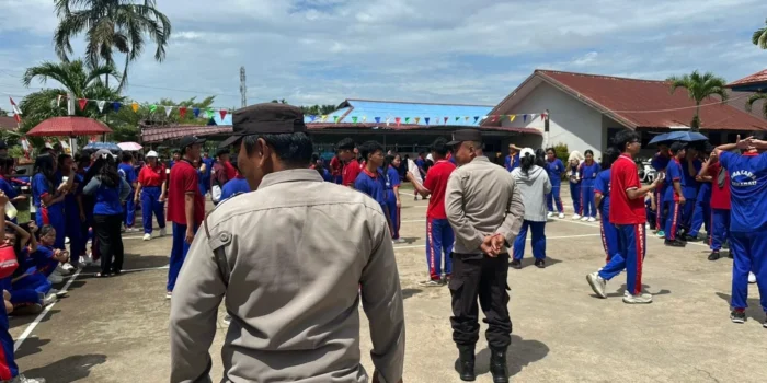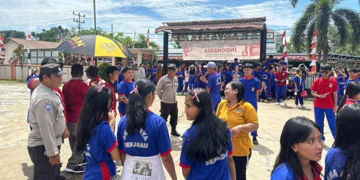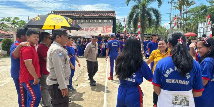 Tak hanya memberi imbauan, personel Satbinmas juga berdialog langsung dengan para siswa. Dari foto yang terekam, terlihat bersama pelajar SMA Karya, mereka ikut menyatu dalam suasana kebersamaan khas peringatan HUT RI.