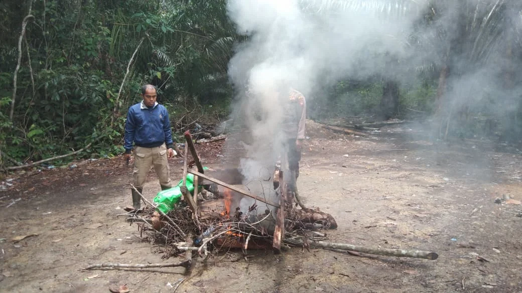 Sejumlah fasilitas berupa tenda dan perlengkapan lain yang diduga dipakai untuk sabung ayam dimusnahkan dengan cara dibakar. Langkah ini merupakan bentuk penegasan agar lokasi tidak lagi dijadikan tempat aktivitas yang melanggar hukum.