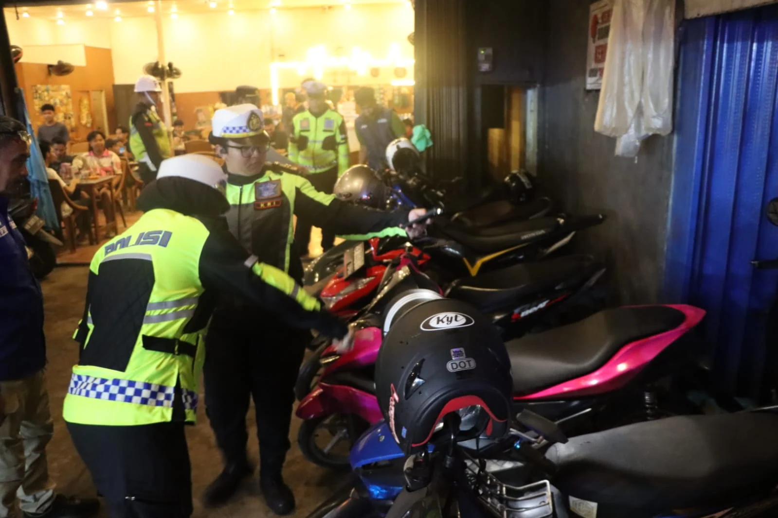 Dalam pelaksanaannya, petugas menyasar kendaraan roda dua yang menggunakan knalpot tidak sesuai standar, serta memeriksa kelengkapan surat-surat kendaraan para pengendara yang berada di area kafe. Razia ini dilakukan menindaklanjuti keluhan masyarakat terkait tingginya gangguan kenyamanan akibat suara bising knalpot brong yang kerap digunakan oleh pengunjung.