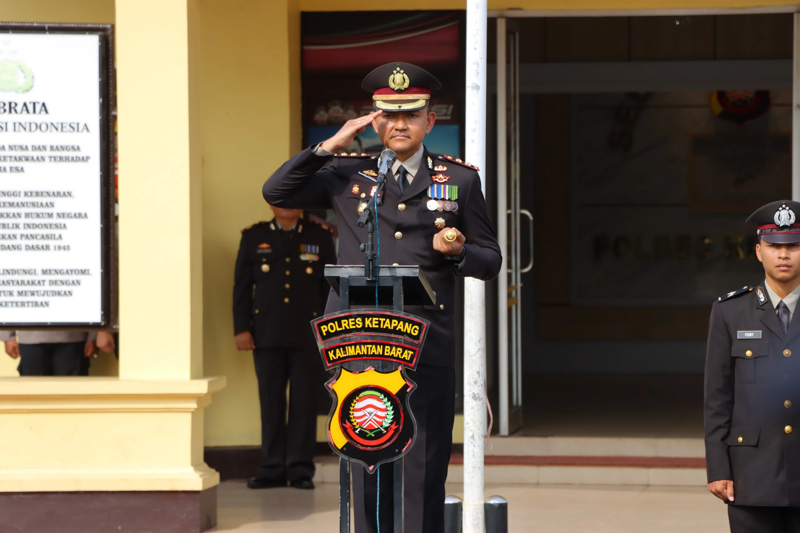 Kapolres Ketapang AKBP Muhammad Harris, S.H., S.I.K., M.I.K., CPHR. memimpin langsung jalannya upacara yang diikuti oleh para Pejabat Utama Polres, personel Polri,serta ASN Polres Ketapang.
