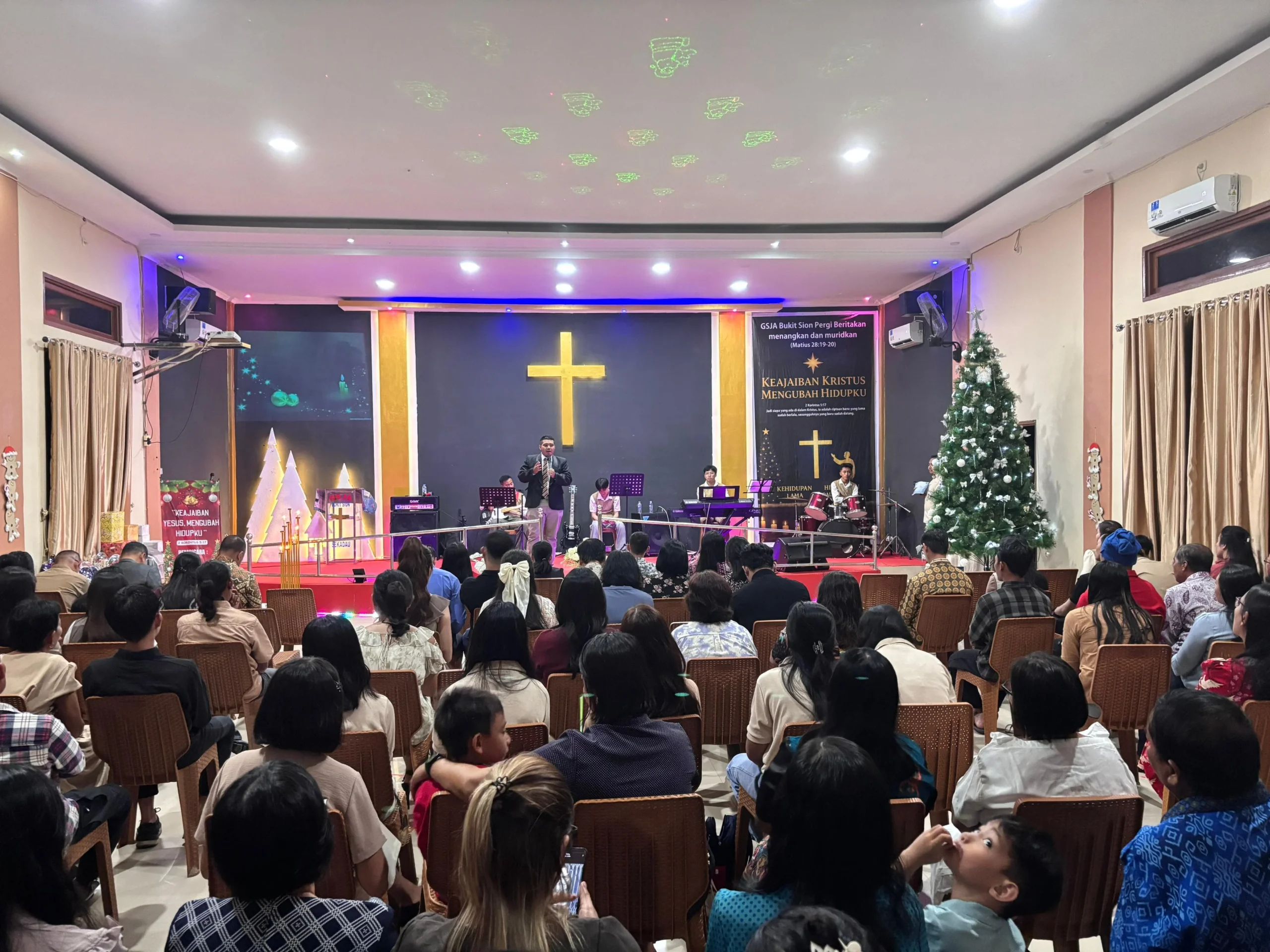 Ibadah Natal yang mengusung tema “Keajaiban Kristus Mengubah Hidupku” tersebut digelar mulai pukul 18.00 WIB di Gereja GSJA Bukit Sion, Jalan Keling Kumang, Desa Mungguk, Kecamatan Sekadau Hilir. Ibadah dipimpin oleh Pendeta Marius, S.Th, dan diikuti sekitar 150 jemaat.