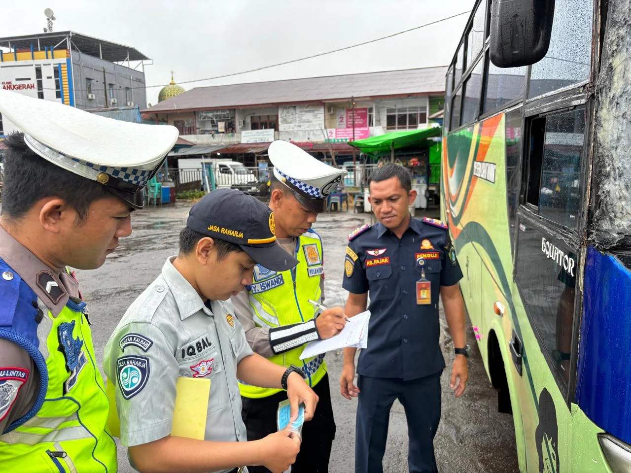 Dari hasil pemeriksaan, petugas menemukan satu unit medium bus dengan kondisi kaca depan retak dan lampu sein belakang kanan tidak berfungsi. Terhadap temuan tersebut, pengemudi diberikan teguran serta diminta segera melakukan perbaikan sebelum kendaraan kembali dioperasikan. Sementara itu, minibus angkutan sekolah dinyatakan dalam kondisi baik dan layak jalan.