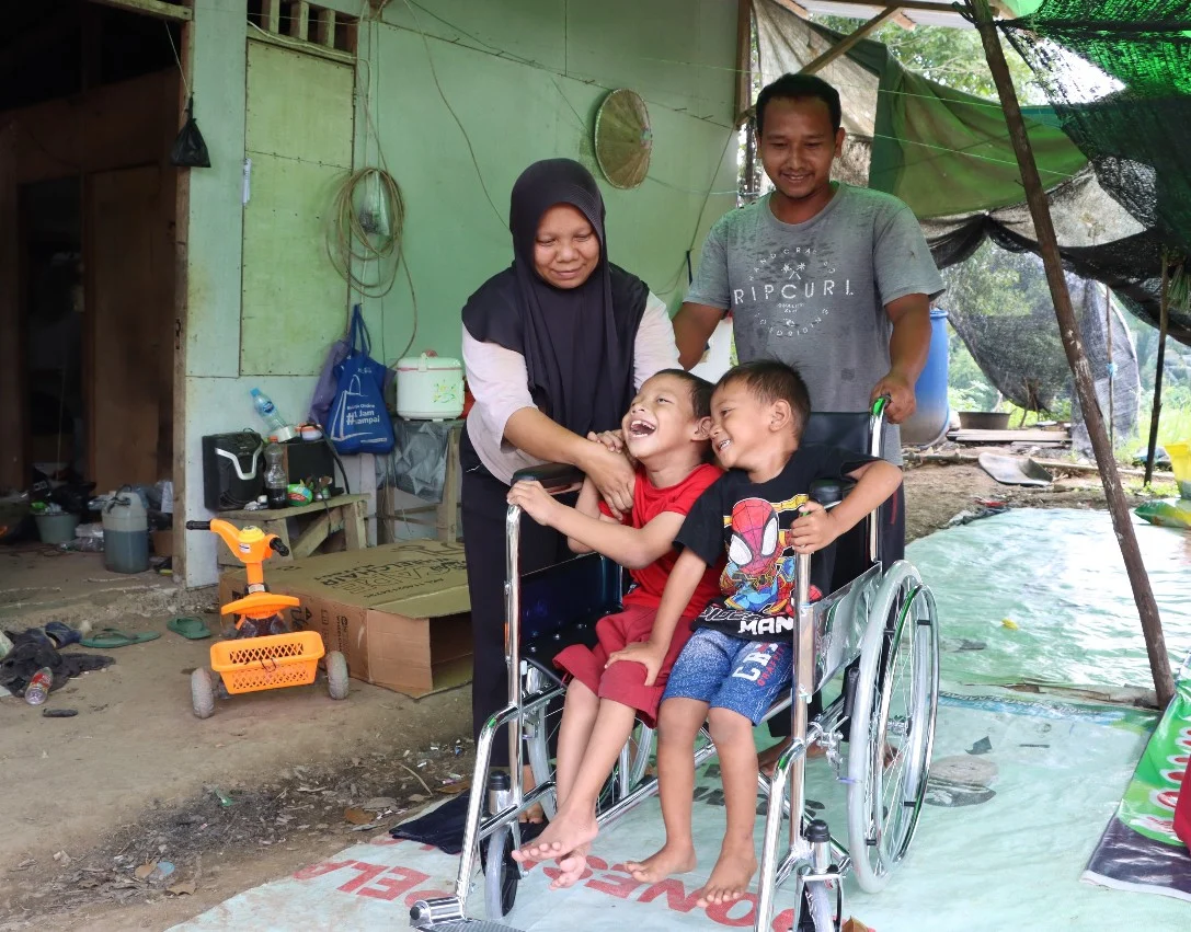 Sementara itu, orang tua Firas, Wadi dan Nurmiati, tak kuasa menahan haru. Mereka menyebut kursi roda ini sangat berarti, karena membantu meringankan beban dalam merawat anak mereka.
