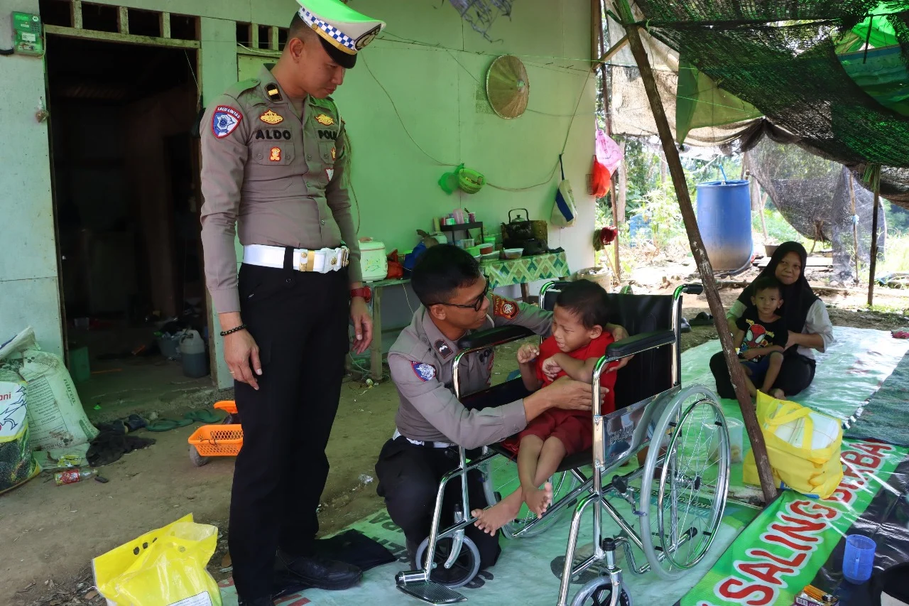 “Tergerak oleh kondisi anak yang sejak lahir mengalami lumpuh layu, donatur kemudian menghubungi kami untuk menyalurkan kursi roda ini. Kami sangat mengapresiasi kepedulian masyarakat yang ikut membantu,” ujar IPDA Aldo.