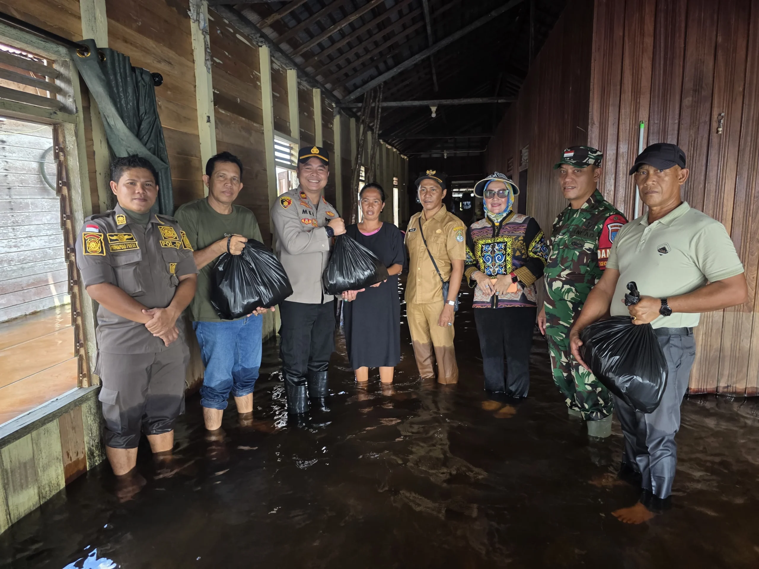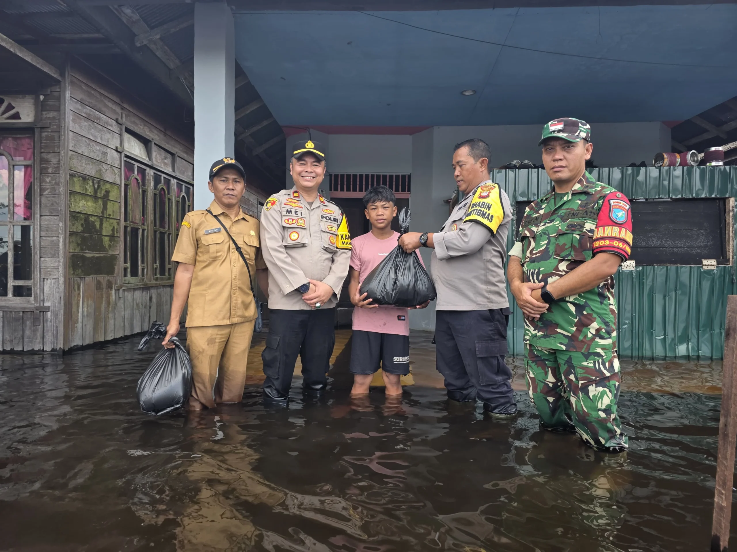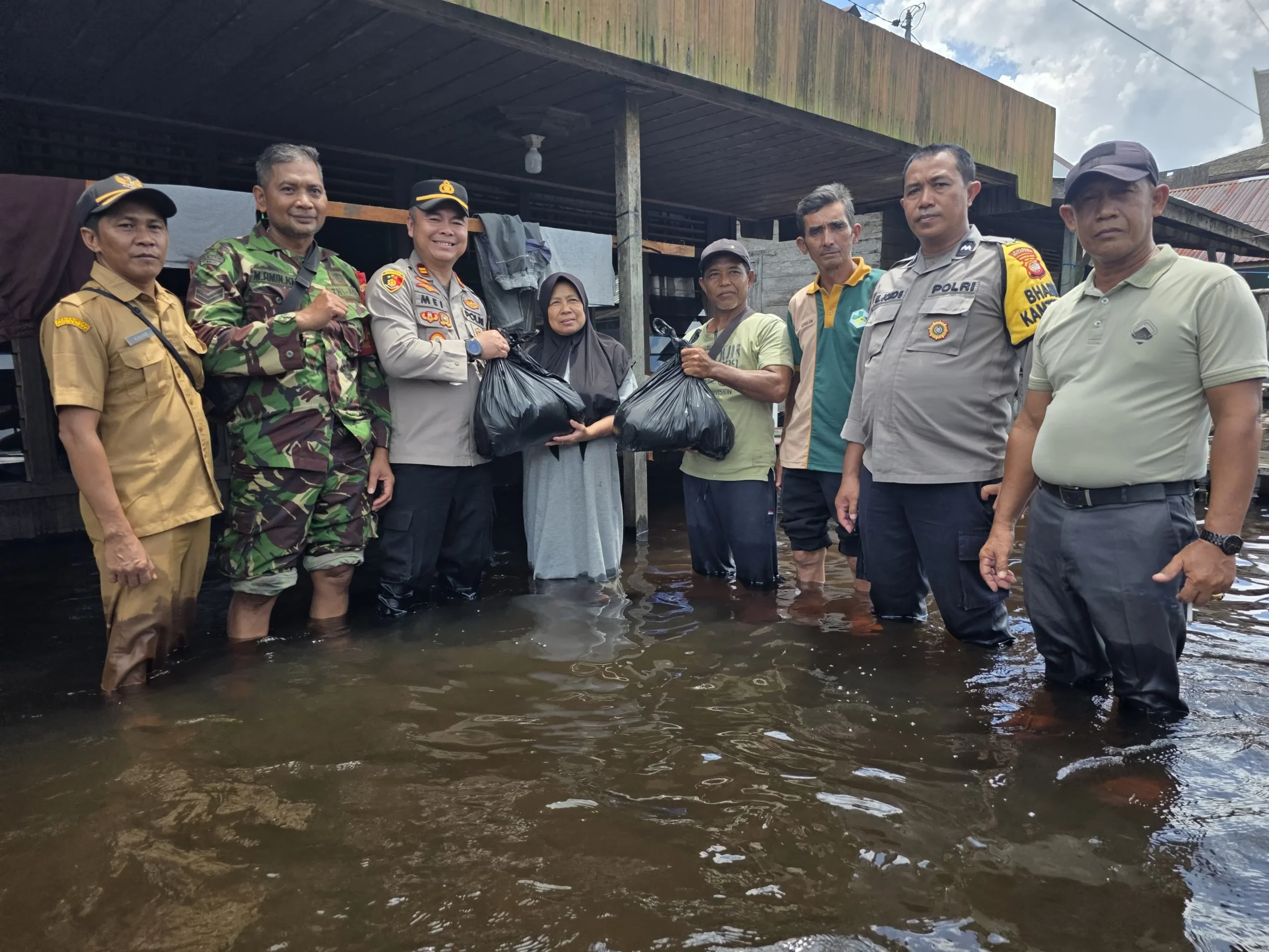 Kapolsek Manis Mata IPTU Meinardus beserta personel turun langsung ke lapangan untuk memastikan kondisi debit air tetap terpantau serta melakukan koordinasi dengan aparatur desa. Selain itu, sebagai bentuk kepedulian sosial, pihak kepolisian menyalurkan bantuan berupa kebutuhan pokok kepada warga yang terdampak banjir, dengan harapan dapat meringankan beban masyarakat.