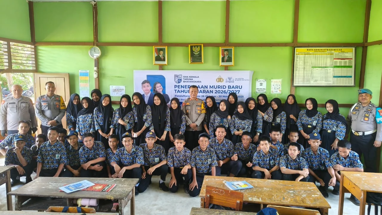 MBN || KETAPANG – Polsek Matan Hilir Selatan melaksanakan kegiatan Sosialisasi Penerimaan Murid Baru (PMB) SMA Taruna Kemala Bhayangkara Tahun Ajaran 2026/2027 yang bertempat di SMP Negeri 07 Desa Pematang Gadung, Kecamatan Matan Hilir Selatan, Kabupaten Ketapang, pada Rabu (05/11/2025).