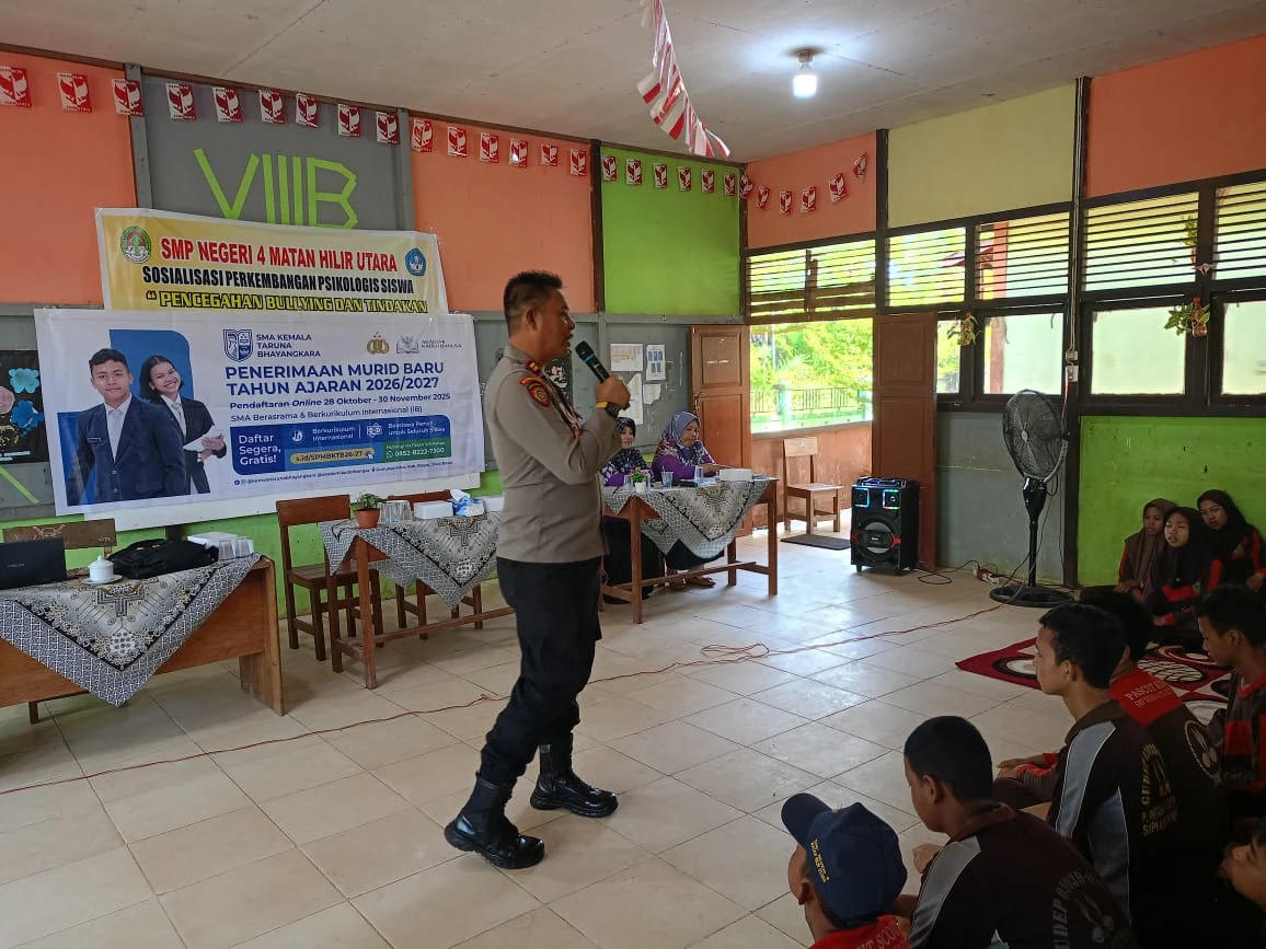 MBN || KETAPANG – Polsek Matan Hilir Utara melaksanakan kegiatan Sosialisasi Penerimaan Murid Baru (PMB) SMA Taruna Kemala Bhayangkara Tahun Ajaran 2026/2027 yang bertempat di SMP Negeri 04, Kecamatan Matan Hilir Utara, Kabupaten Ketapang, pada Jumat (14/11/2025).