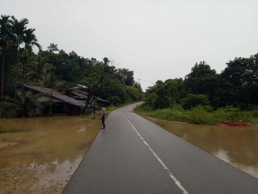 Langkah tersebut dilakukan menyusul hujan deras yang terjadi selama dua hari terakhir, yang menyebabkan debit air sungai naik dan menimbulkan banjir di beberapa titik jalan, termasuk di lokasi tersebut.