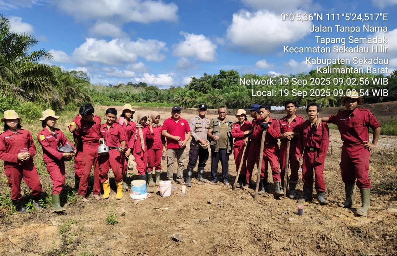 MEDIA BERITA NASIONAL ||SEKADAU – Jajaran Polsek Sekadau Hilir bersama masyarakat dan pelajar melaksanakan penanaman jagung hibrida di Dusun Tapang Semadak, Desa Tapang Semadak, Kecamatan Sekadau Hilir, Kabupaten Sekadau, Jumat (19/9/2025).