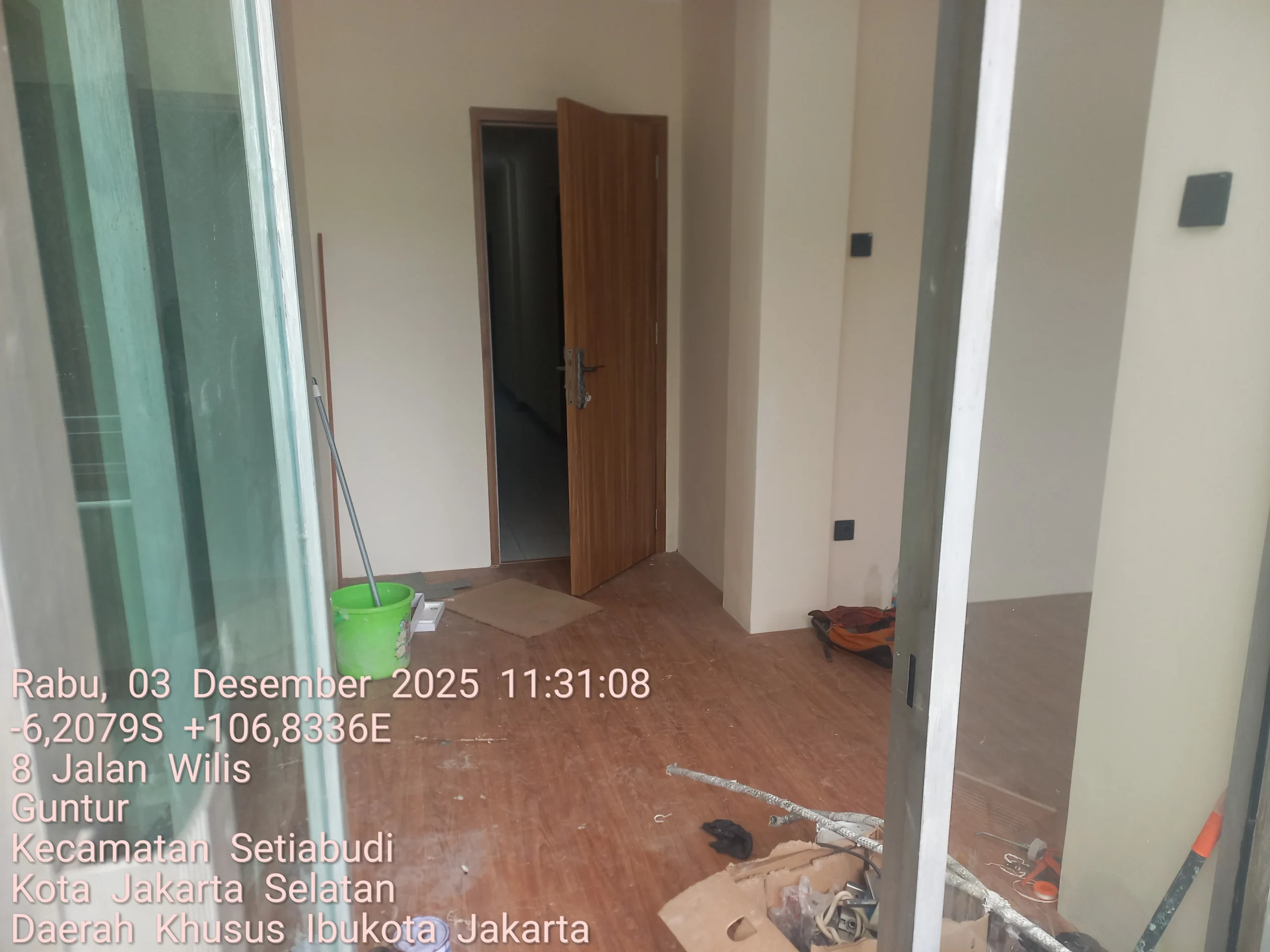 Dalam dokumentasi lapangan, pekerja tampak mengerjakan renovasi bagian dalam ruangan, termasuk pemasangan material baru dan perbaikan interior.