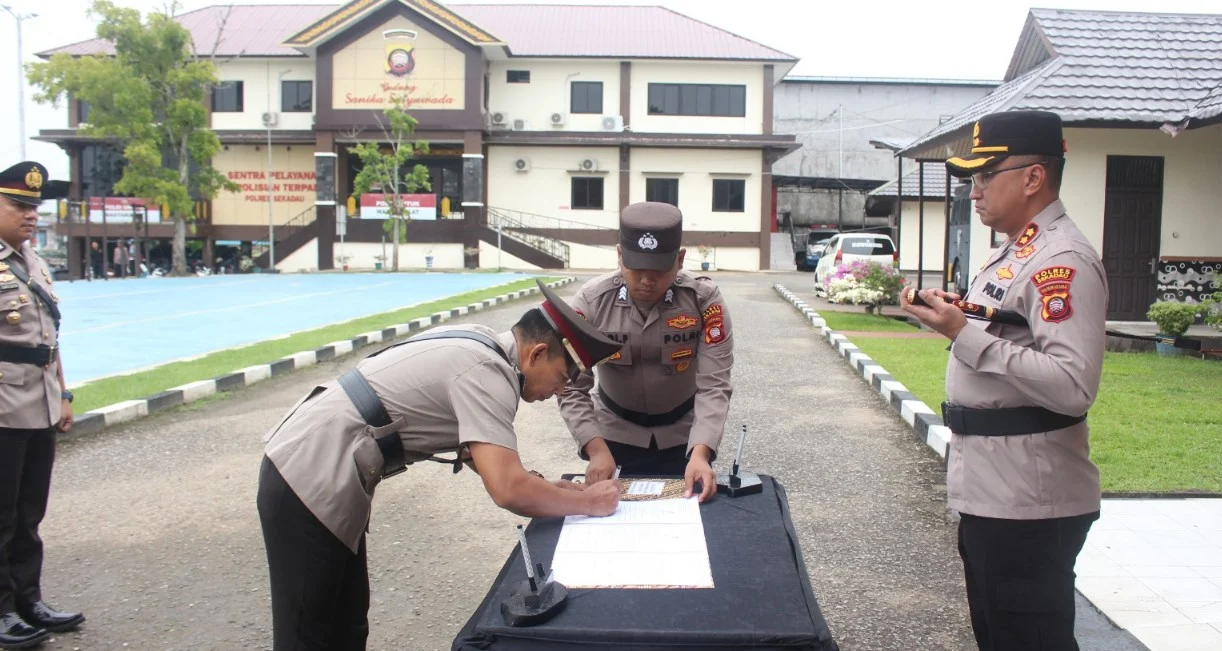 MBN ||SEKADAU – Kapolres Sekadau AKBP Donny Molino Manoppo, S.H., S.I.K., M.Si, memimpin upacara serah terima jabatan (sertijab) tiga Pejabat Utama (PJU) di Mapolres Sekadau, Selasa (9/9/2025).