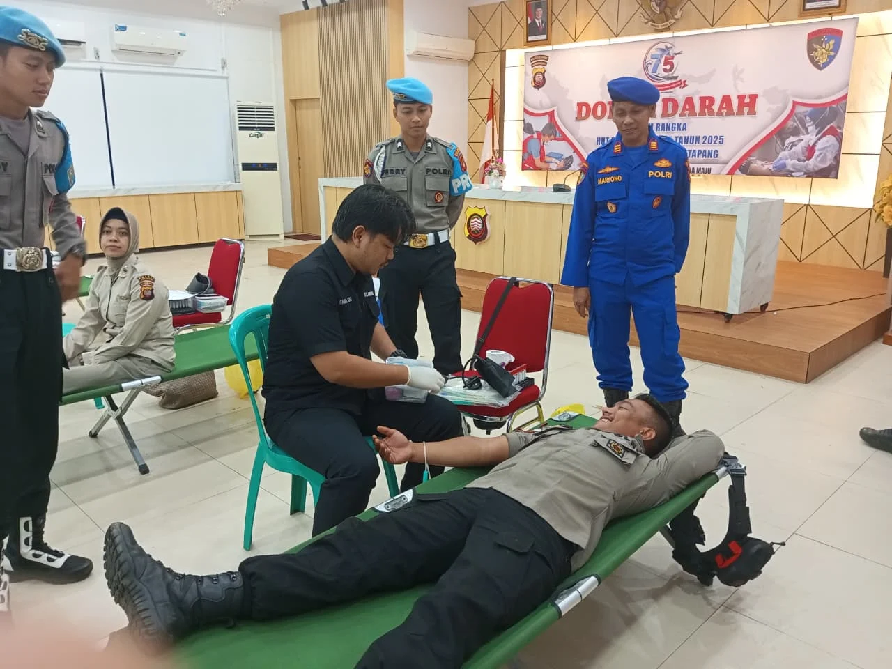 MBN ||KETAPANG – Dalam rangka menyambut Hari Ulang Tahun (HUT) ke-75 Korps Kepolisian Perairan dan Udara (Polairud) Tahun 2025, Satuan Polisi Perairan dan Udara (Sat Polairud) Polres Ketapang menggelar kegiatan aksi donor darah, bertempat di Aula Mapolres Ketapang, pada Rabu (12/11/2025).