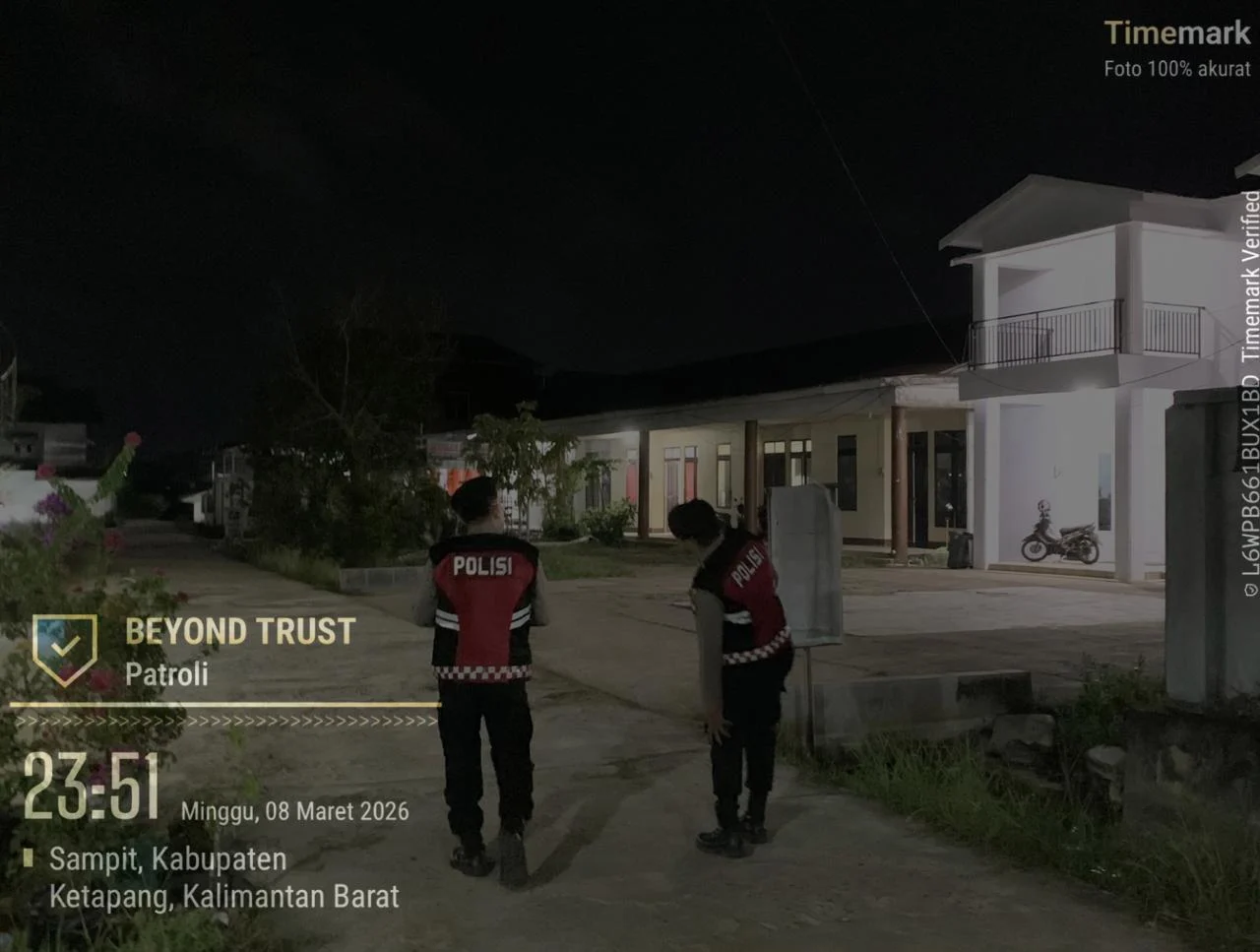 MBN ||KETAPANG, Polda Kalbar – Dalam rangka mengantisipasi potensi gangguan keamanan dan ketertiban masyarakat (kamtibmas) selama bulan suci Ramadhan, Kanit Patroli Sat Samapta Polres Ketapang, Ipda Sukarno bersama personel melaksanakan kegiatan Patroli Perintis Presisi di wilayah Kota Ketapang pada Minggu (08/03/2026).