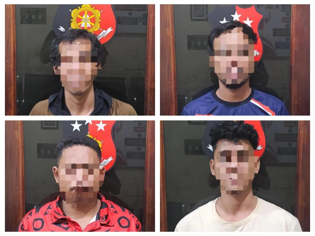 “Unit Jatanras Satreskrim bergerak cepat dan berhasil menangkap empat tersangka berinisial MA (28), I (23), E (26), dan HY (32). Sementara satu tersangka lain berinisial L masih dalam pencarian,” ujar IPTU Zainal, Selasa (19/8).