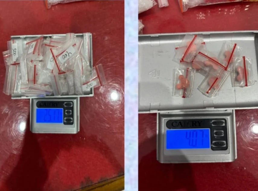 Saat DS dan P diamankan, polisi meminta perangkat warga setempat untuk turut menyaksikan jalannya penggeledahan. Sementara itu, untuk barang bukti yang diamankan dari kedua pelaku adalah 38 kantong klip plastik transparan berisi serbuk kristal diduga narkotika jenis sabu dengan berat total 25,17 gram brutto, 8 butir pil diduga narkotika jenis ekstasi warna pink dengan berat total 4,07 gram brutto serta perangkat lainnya. Dari keterangan DS, barang bukti tersebut adalah miliknya yang ia dapati dari seseorang dan direncanakan akan dijual kembali. Kini, keduanya ditahan di Mapolres Ketapang untuk menjalani pemeriksaan lebih lanjut.