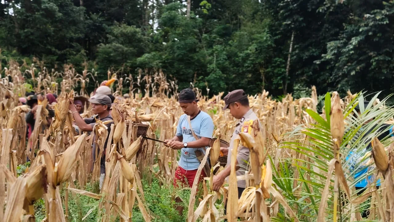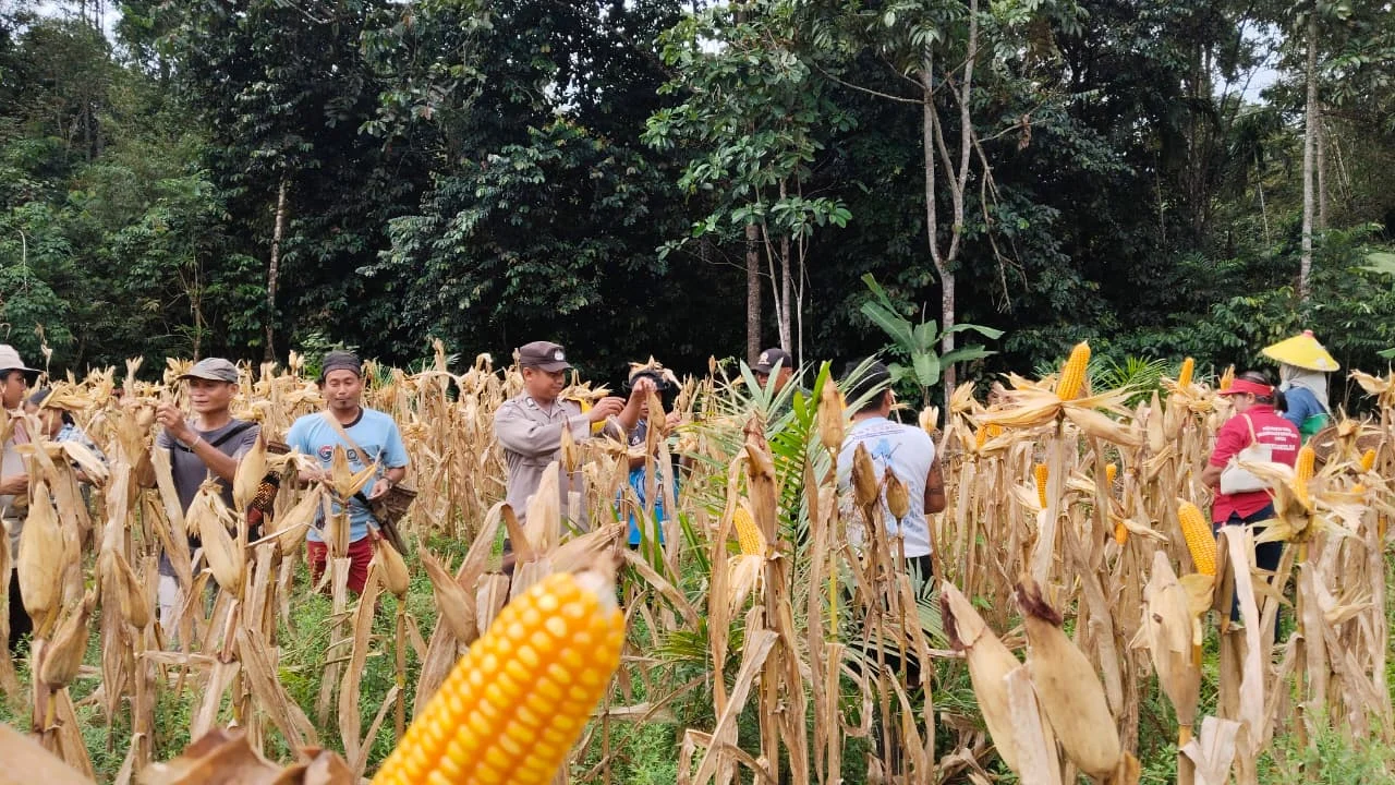 MBN ||SEKADAU – Polsek Nanga Taman bersama pemerintah desa, TNI, dan kelompok tani melaksanakan panen jagung di Dusun Kelampuk, Desa Meragun, Kecamatan Nanga Taman, Kabupaten Sekadau, Sabtu (16/8/2025).