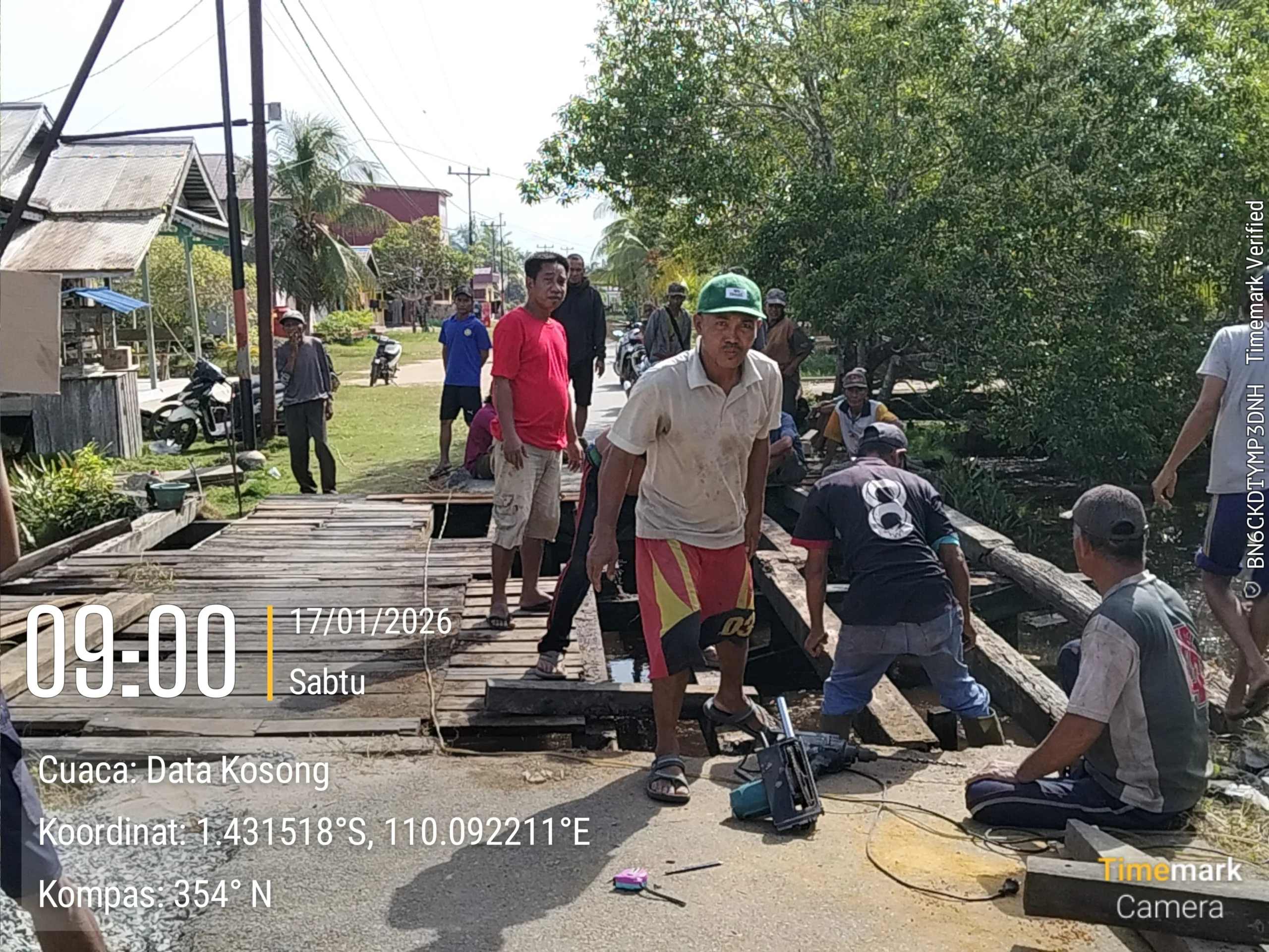 Seluruh proses rehabilitasi dilakukan melalui swadaya masyarakat, baik dalam bentuk sumbangan material, dana, maupun tenaga. Sejak pagi hari, warga tampak bergotong royong dengan penuh semangat kekeluargaan, saling bahu-membahu demi memastikan jembatan dapat kembali digunakan dengan aman dan nyaman.