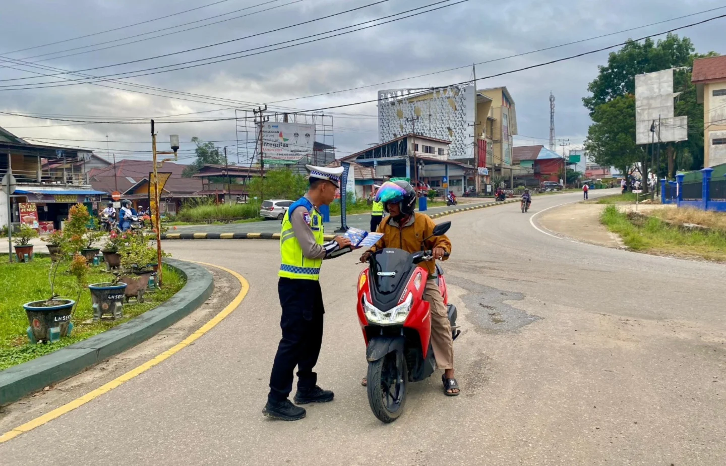Kegiatan tersebut berlangsung di seputaran Bundaran Tugu PKK Sekadau, Selasa (13/1/2026) pagi sekitar pukul 06.30 WIB, dengan sasaran pengendara roda dua dan roda empat yang melintas di kawasan tersebut.
