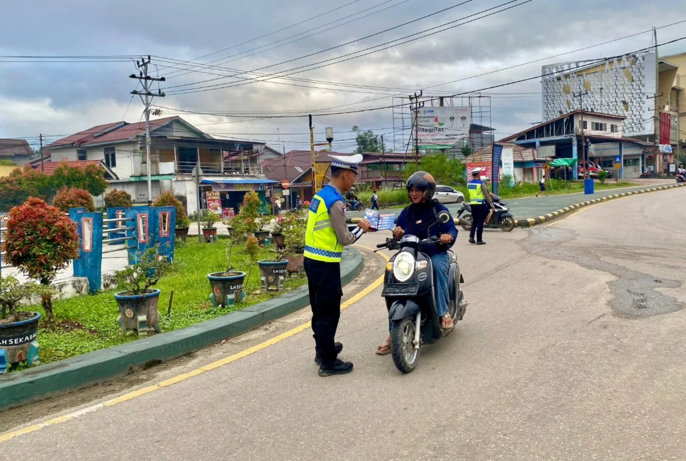 MBN || SEKADAU, Polda Kalbar – Unit Keamanan dan Keselamatan (Kamsel) Satuan Lalu Lintas (Satlantas) Polres Sekadau melaksanakan edukasi keamanan, keselamatan, ketertiban, dan kelancaran lalu lintas (Kamseltibcar Lantas) kepada pengguna jalan raya melalui pembagian brosur petunjuk keselamatan berkendara.