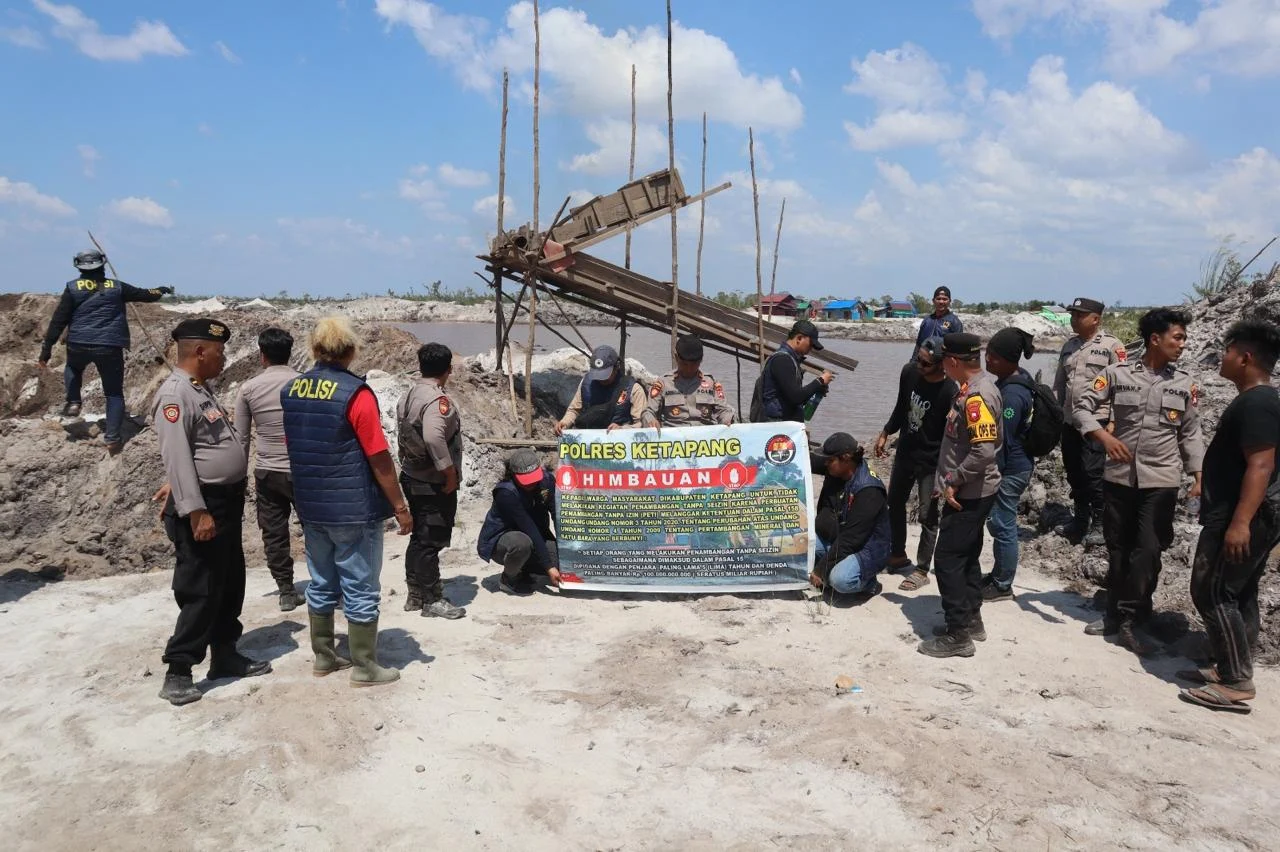 MBN||KETAPANG – Tim Gabungan Polres Ketapang mendatangi lokasi pertambangan tanpa izin di lokasi Kruing Desa Sungai Besar Kecamatan Matan Hilir Selatan Kabupaten Ketapang. Kedatangan Tim gabungan ke lokasi tersebut untuk melakukan penindakan aktivitas pertambangan ilegal, pada Selasa, (26/08/2025) Pukul 12.30 Wib.