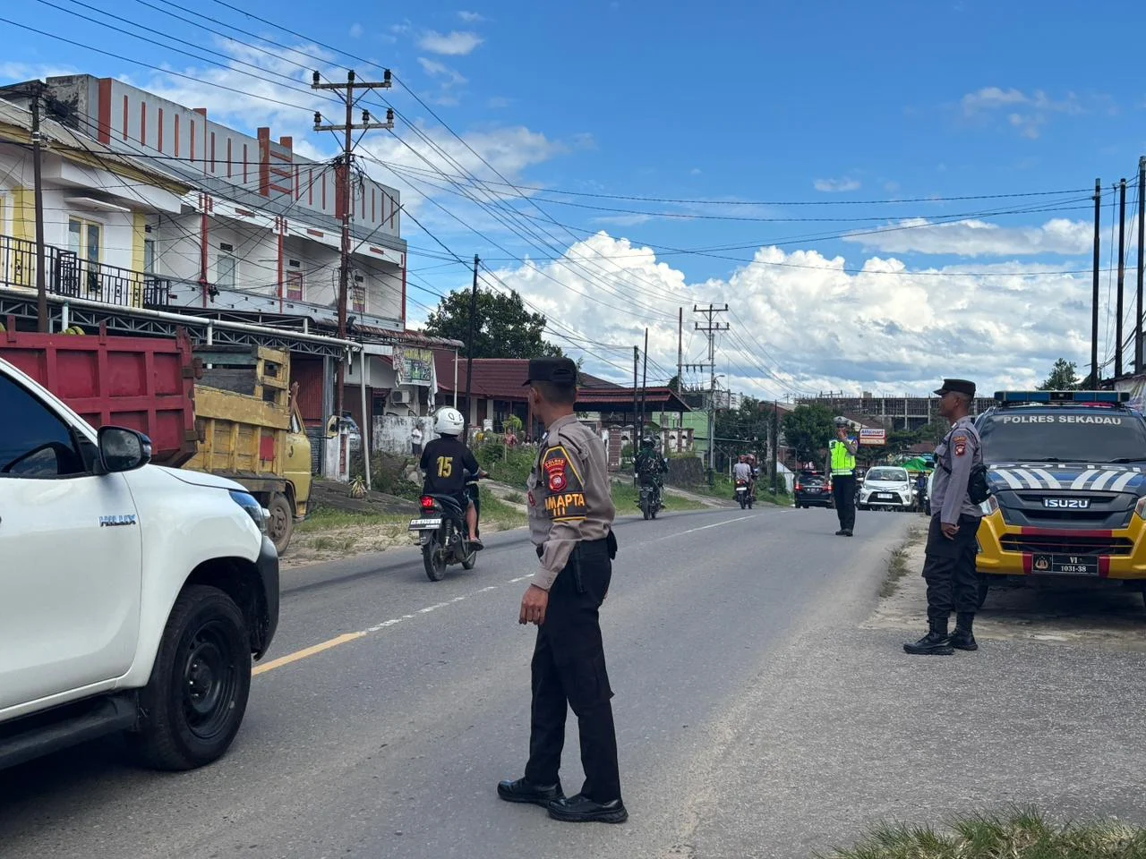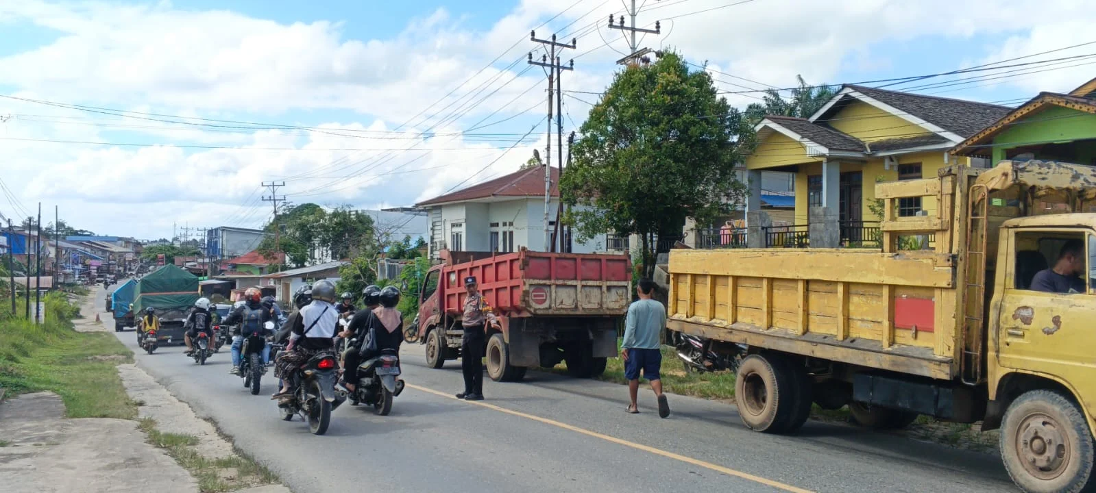 Menindaklanjuti laporan tersebut, Pamapta III Polres Sekadau Aipda Oky Priambodo bersama personel piket fungsi Samapta dan Satlantas langsung mendatangi lokasi. Petugas melakukan pengaturan arus sekaligus penguraian kemacetan guna mencegah penumpukan kendaraan yang lebih panjang.