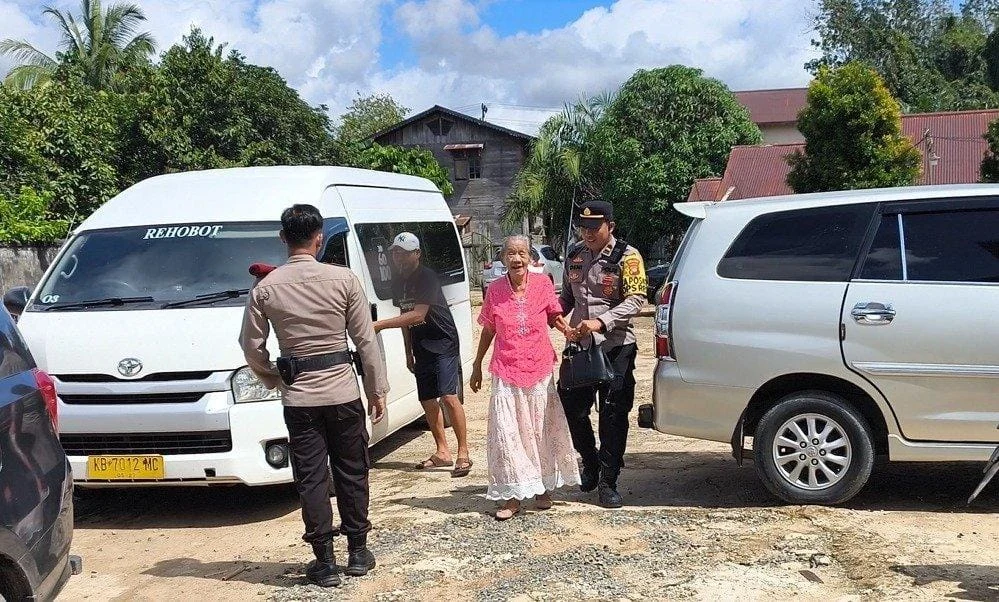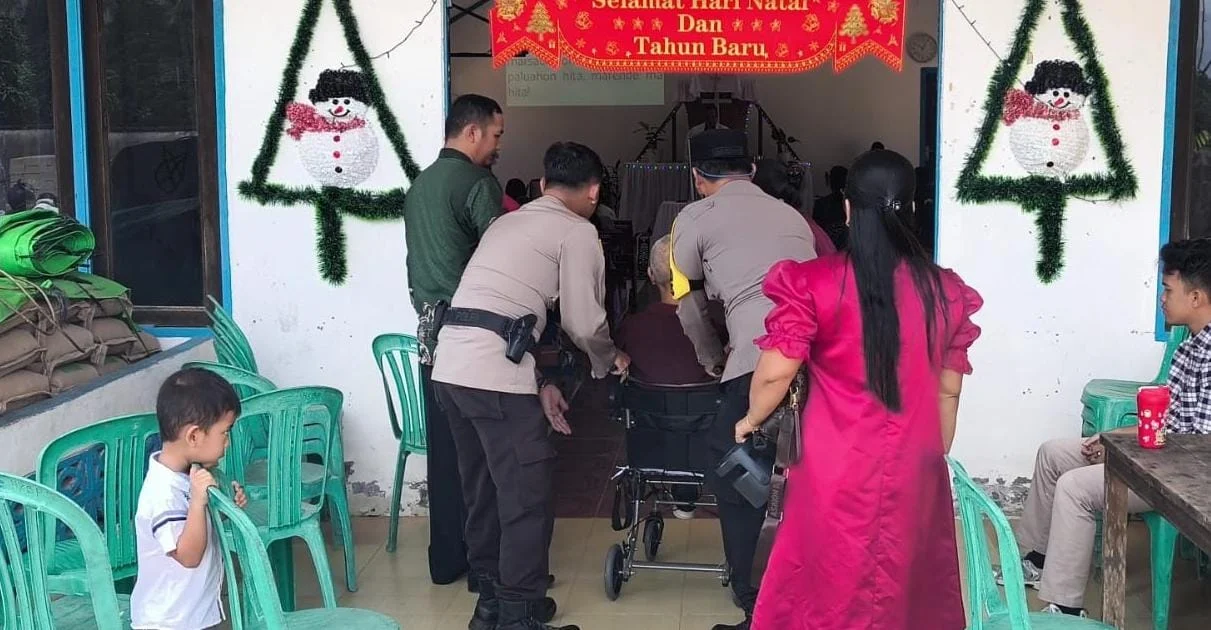Wujud Humanis Ops Lilin Kapuas: Polisi Bantu Lansia Beribadah di Gereja HKBP Sekadau