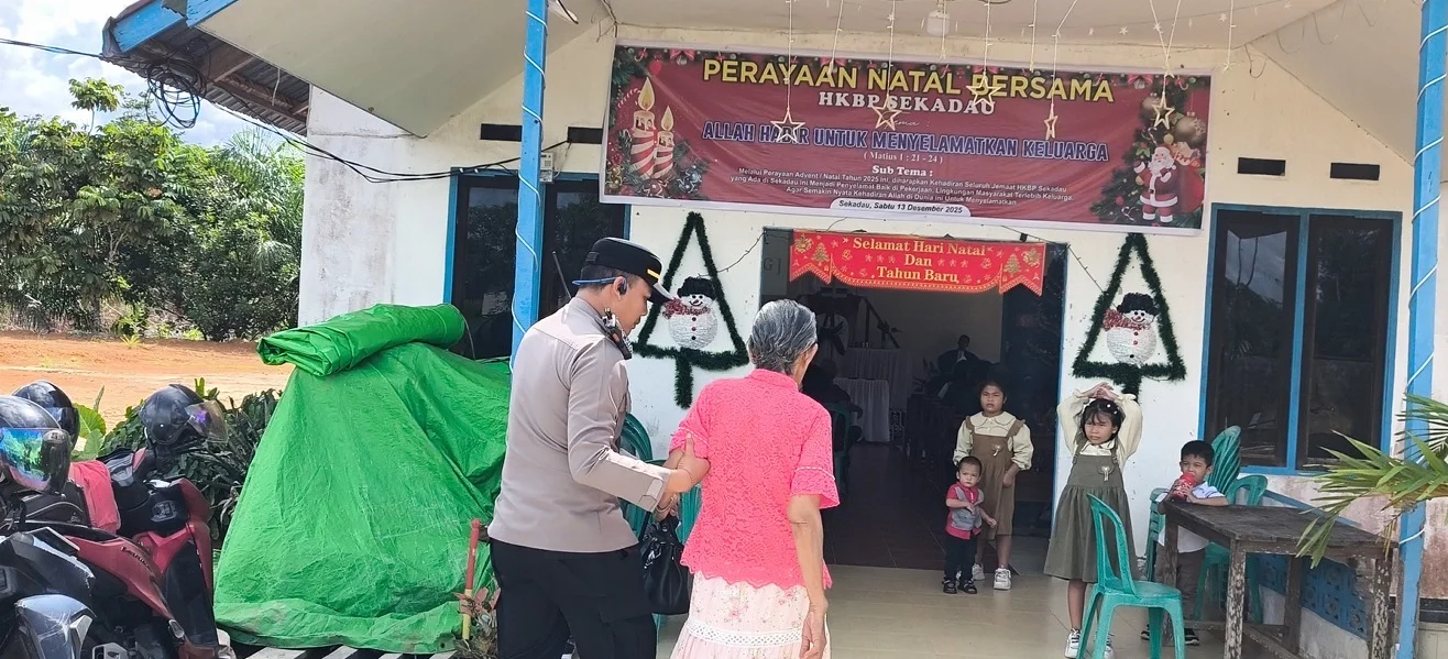 MBN ||SEKADAU, Polda Kalbar – Polres Sekadau melaksanakan pengamanan ibadah Natal dalam rangka Operasi Lilin Kapuas 2025 di Gereja Huria Kristen Batak Protestan (HKBP), Jalan Merdeka Timur, Desa Mungguk, Kecamatan Sekadau Hilir, Kamis (25/12/2025), pukul 10.00 WIB.